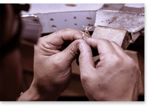 The main two production methods most commonly used to create jewelry are casting and hand fabrication. Both have their advantages and disadvantages, which we’ll review in further detail in this post. Before we dive any deeper, it’s important to keep in mind that the term “handmade” is often incorrectly used to describe both manufacturing processes. Hand fabrication is the ONLY method where a piece of jewelry is created from scratch by a skilled craftsman, while methods like casting rely on additional manufacturing techniques to assist in the process.