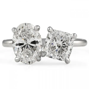 1.51 carat Oval & 1.20 carat Cushion Diamond Duo Ring