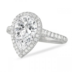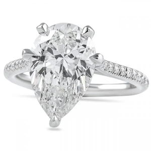 4.03 carat Pear Shape Lab Diamond Pave Prong Engagement Ring