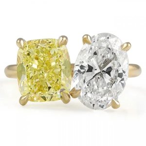 Yellow Diamond Cushion and Oval Diamond Duo Ring