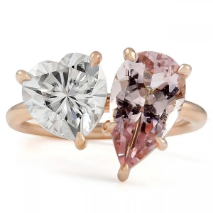 Pear Morganite and Heart Moissanite Duo Ring | Lauren B Jewelry