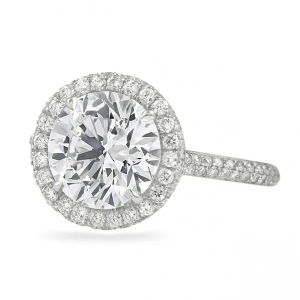 2.78 Carat Round Diamond Halo & Two-Row Band Engagement Ring