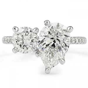 2 carat Pear & 1 carat Round Diamond Duo Ring