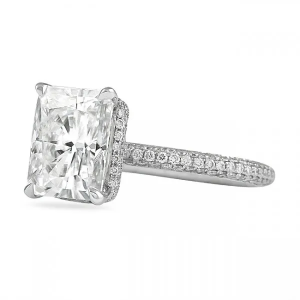 Radiant Moissanite Hidden Halo Three-Row Engagement Ring