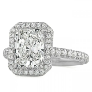 2.62 carat Radiant Cut Diamond Halo Three Row Engagement Ring