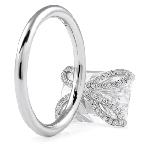 Our Signature Wrap features a full row of pave diamonds that wrap beneath the center stone and goes over the prongs for a continuous look. This style of engagement ring offers a unique touch of detail that is only visible from the profile.